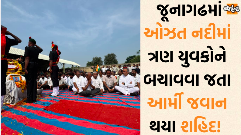 જૂનાગઢ જિલ્લાના વંથલી તાલુકાના ટીકર ગામ નજીકથી પસાર થતી ઓઝત નદીમાં ત્રણ યુવકોનો જીવ બચાવવા જતા એક આર્મી જવાને પોતાનો જીવ ગુમાવ્યો હોવાની કરુણ ઘટના સામે આવી છે. ટીકર ગામના વતની આર્મી જવાન ભરતભાઈ ભેટારીયા હાલ રજા પર પોતાના વતન આવ્યા હતા, ત્યારે આ દુર્ઘટનામાં તેમનું મૃત્યુ થયું છે, જયારે સંપૂર્ણ લશ્કરી સન્માન સાથે તેમને અંતિમ વિદાય આપવામાં આવી ત્યારે આખું ગામ હિબકે ચડ્યું હતું. આર્મી જવાન ભરતભાઈ ભેટારીયા છેલ્લા 15 વર્ષથી ભારતીય સેનામાં 20 મહાર બટાલિયનમાં ફરજ બજાવતા હતા અને હાલ તેઓ હવાલદાર તરીકે લેહ લદાખમાં તૈનાત હતા. જોકે હાલ દિવાળીના તહેવારમાં તેઓ પણ પોતાના પરિવારજનો સાથે તહેવાર ઉજવવા વતન આવ્યા હતા , ત્યારે આ દુર્ઘટનામાં તેમણે પોતાનો જીવ ગુમાવ્યો છે. આર્મી જવાન ભરતભાઈ ભેટારીયા બે દિવસ પહેલા ઓઝત નદી પાસે મિત્રો સાથે ફરવા ગયા હતા, જ્યાં ત્રણ યુવકોને ડૂબતા જોઈને ભરતભાઈ તેઓને બચાવવા પાણીમાં કૂદી પડ્યા હતા. જ્યાં આર્મી જવાન ભરતભાઈએ ત્રણ યુવકોનો જીવ તો બચાવી લીધો, પરંતુ પોતે જ જીવ ગુમાવી અને દુનિયા છોડીને ચાલ્યા ગયા છે, ત્યારે લશ્કરી સન્માન સાથે તેમની અંતિમ વિદાય નીકળતા આખું ગામ હિબકે ચડ્યું છે. આર્મી જવાન ભરતભાઈને સંતાનમાં એક પુત્ર અને એક પુત્રી છે