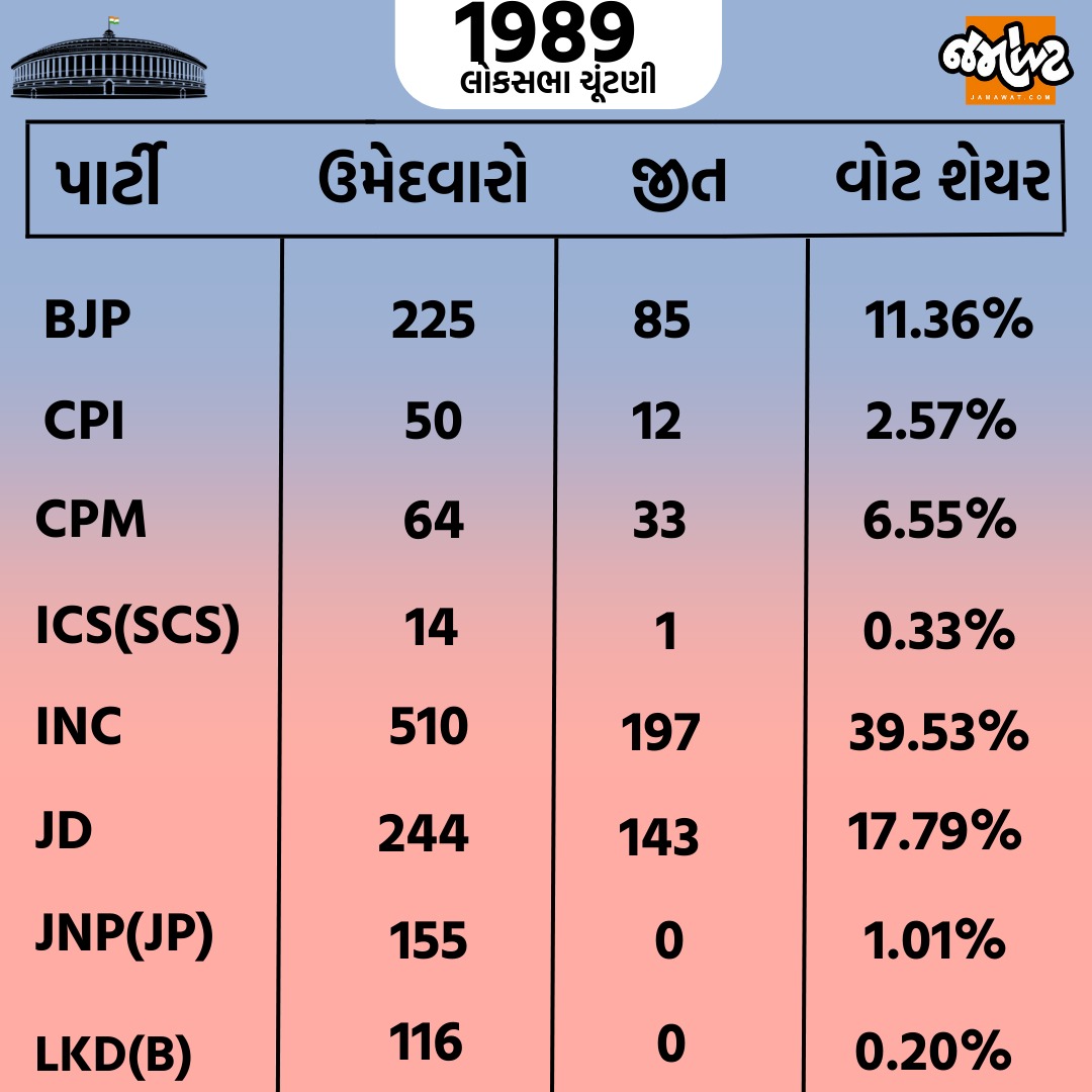 30 વર્ષ પહેલા યોજાયેલી નવમી લોકસભાની ચૂંટણી ભારતીય રાજકારણમાં ભાજપનો ઉદય હતો. જ્યારે 1984ની લોકસભા ચૂંટણીમાં ભાજપ માત્ર 2 બેઠકો પર જ ઘટી હતી, આ ચૂંટણીમાં પાર્ટીને 85 બેઠકો મળી હતી. આ ચૂંટણીમાં લાલકૃષ્ણ અડવાણી પહેલીવાર નવી દિલ્હીથી ચૂંટણી લડ્યા હતા અને જીત્યા પણ હતા. જો કે, વીપી સિંહની સરકાર લાંબો સમય ટકી શકી નહીં અને ગઠબંધનની રાજનીતિ દેશને સ્થિર સરકાર આપવામાં નિષ્ફળ રહી. 11 મહિનામાં જ વીપી સિંહની આગેવાની હેઠળની રાષ્ટ્રીય મોરચાની ગઠબંધન સરકાર ગૃહમાં વિશ્વાસ મત હારી ગઈ અને વીપી સિંહે રાજીનામું આપવું પડ્યું તે જ હાલ ચંદ્રશેખર સરકારના પણ થતાં દેશમાં ફરી એક વખત લોકસભા ચૂંટણીની તૈયારીમાં લાગી ગયો હતો.