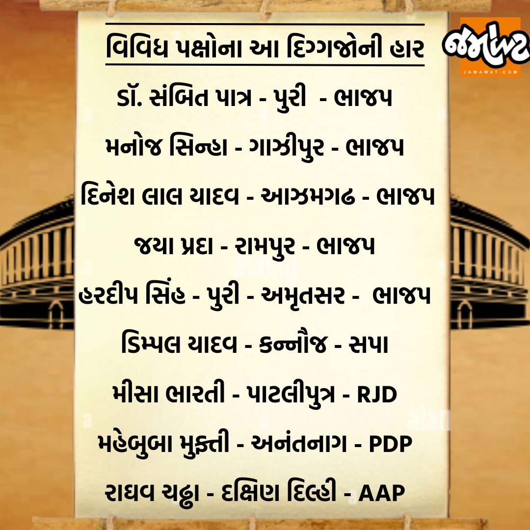 લોકસભા ચૂંટણી 2019માં બીજેપીના સહયોગી જેડીયુએ બિહારમાં 17 સીટો જીતી હતી. ગત વખતે જેડીયુએ એનડીએથી અલગ થઈને ચૂંટણી લડી હતી અને 2 બેઠકો જીતવામાં સફળ રહી હતી. આ ચૂંટણીમાં NDAએ ભલે સારું પ્રદર્શન કર્યું હોય પરંતુ AIADMKને તમિલનાડુમાં ભારે નુકસાન થયું હતું. AIADMK આ વખતે માત્ર 1 સીટ જીતી શકી હતી. 2014માં AIADMKએ અલગ ચૂંટણી લડી હતી અને 37 સીટો જીતી હતી. આ સિવાય ચંદ્રબાબુ નાયડુની પાર્ટી ટીડીપીને પણ આંધ્રમાં નુકસાન થયું હતું. 2014માં ટીડીપીએ 16 સીટો જીતી હતી, આ વખતે તેને માત્ર 3 સીટોથી સંતોષ માનવો પડ્યો હતો. બંગાળના મુખ્યમંત્રી મમતા બેનર્જીની પાર્ટી તૃણમૂલ કોંગ્રેસને આ વખતે નુકસાન સહન કરવું પડ્યું હતું. 2014માં બંગાળમાં 42માંથી 34 સીટો જીતનારી તૃણમૂલ આ વખતે માત્ર 22 સીટો જ જીતી શકી હતી. બીજી તરફ ઓડિશામાં પણ બીજેડીની બેઠકો ઘટી હતી. મોદી લહેર છતાં 2014માં 20 બેઠકો જીતનાર બીજેડીએ આ વખતે 12 બેઠકો જીતી હતી. બીજી તરફ મહેબૂબા મુફ્તીની પાર્ટી પીડીપી કાશ્મીરમાં એક પણ સીટ જીતી શકી નહોતી. છેલ્લી ચૂંટણીમાં પીડીપીને 6માંથી 3 બેઠકો મળી હતી. બિહારના પૂર્વ મુખ્યમંત્રી લાલુ પ્રસાદ યાદવની પાર્ટી આરજેડી આ વખતે ખાતું પણ ખોલાવી શકી નહોતી. ગત ચૂંટણીમાં આરજેડીએ 4 બેઠકો જીતી હતી. બીજી તરફ, સપા ઉત્તર પ્રદેશમાં પોતાની 5 બેઠકો જાળવી શકી હતી. જોકે યાદવ પરિવારના માત્ર બે સભ્યો અખિલેશ યાદવ અને મુલાયમ સિંહ યાદવ જ જીતી શક્યા હતા. જ્યારે પરિવારના ત્રણ સભ્યો ચૂંટણી હારી ગયા હતા.